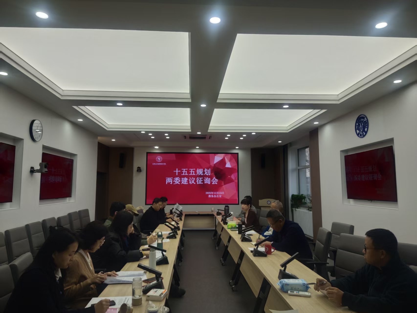 12月15日下午,在学院413交互式空间室召开“十五五”规划两委建议征询会,广泛听取各方意见,汇聚智慧,凝聚共识,确保规划编制科学精准、符合实际。会议由教学副院长赵娜主持,学院教学委员会全体委员、职称评审推荐小组成员和各教学研究室主任参加。